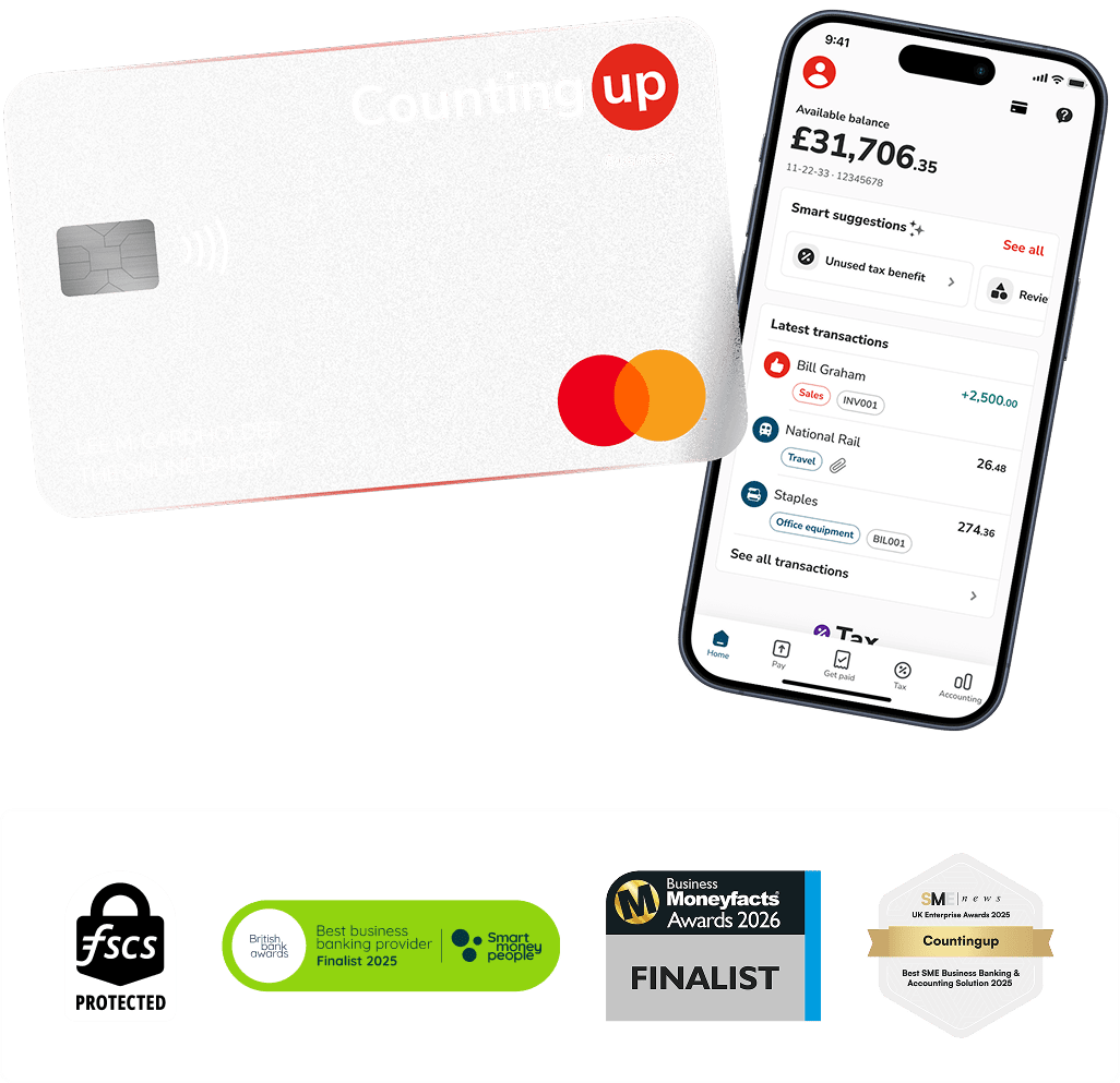 Get a business bank account, accounting and tax tools in one smart app from just £3/month. No switching between tools, no juggling spreadsheets and no paying for extra software.